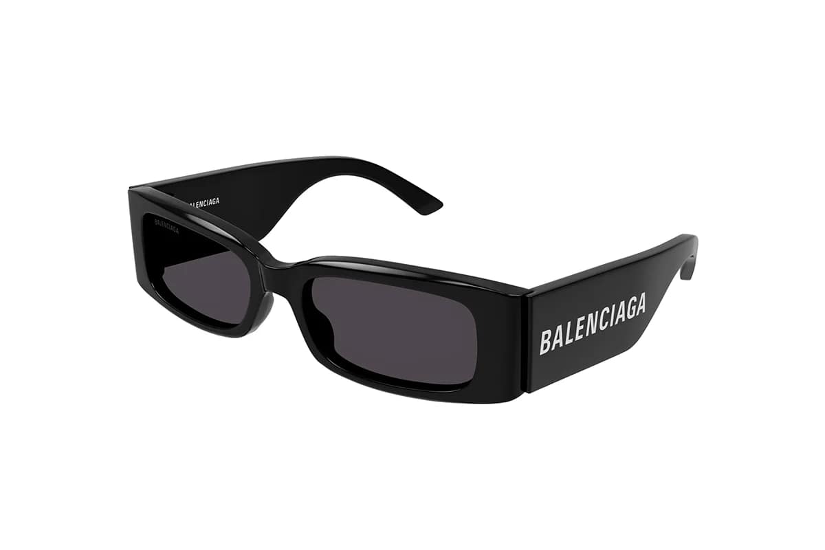 Occhiali da sole Balenciaga BB0260S 001 (misura 56-18-140). Montatura Donna realizzata in Acetato color nero con lenti in Nylon. Occhiali da sole rettangolari ideali per un viso rotondo, a diamante, ovale.