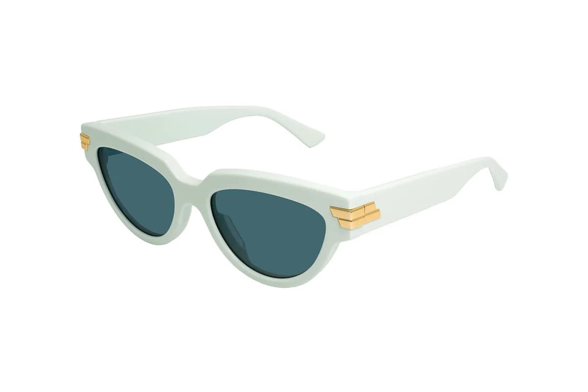 Occhiali da sole Bottega Veneta BV1035S 009 Green (Misura 55-19-145) Linea Unapologetic. Montatura donna dalla forma cat-eye morbida realizzata in acetato riciclato verde con lenti flashate in bio nylon verde. Modello impreziosito dal nuovo iconico motivo a strisce sfrangiate tridimensionale in metallo sulle aste. Superfici dal design ben definito grazie al processo di fabbricazione artigianale. Logo tono su tono inciso al laser all’esterno dell’asta sinistra. Dettagli antiscivolo all’interno dei terminali.