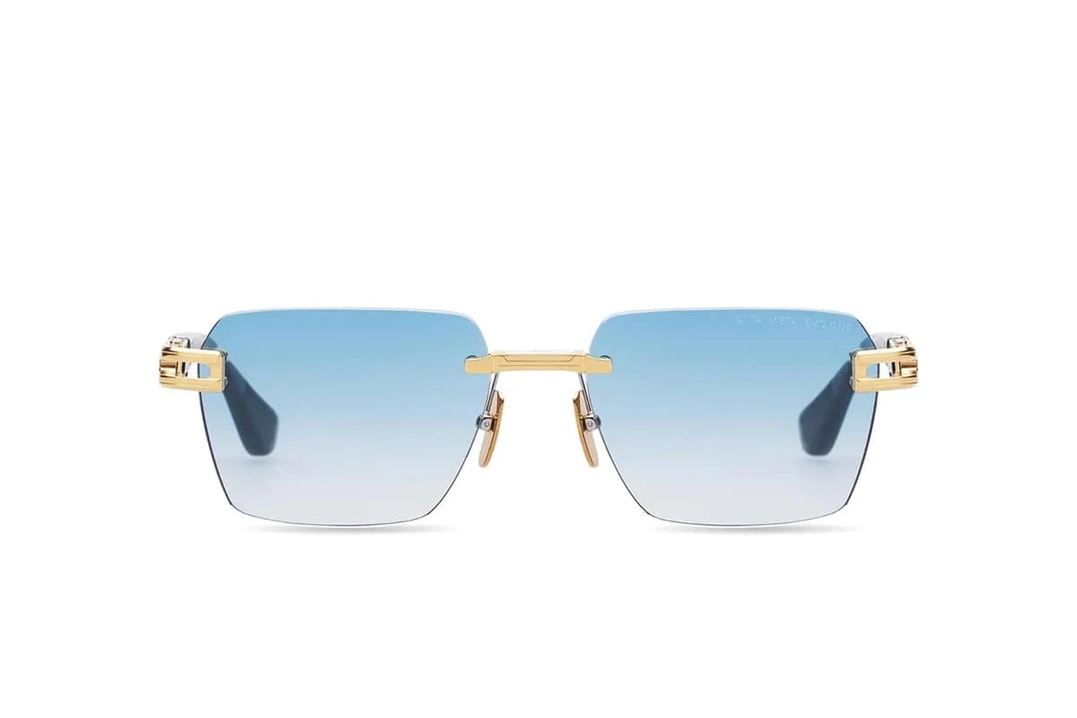 Occhiali da sole Dita Eyewear Meta-Evo One DTS147-A 03 (misura -). Montatura Unisex realizzata in Titanio color oro e lenti turchese sfumato. Occhiali da sole squadrati ideali per un viso rotondo, ovale.