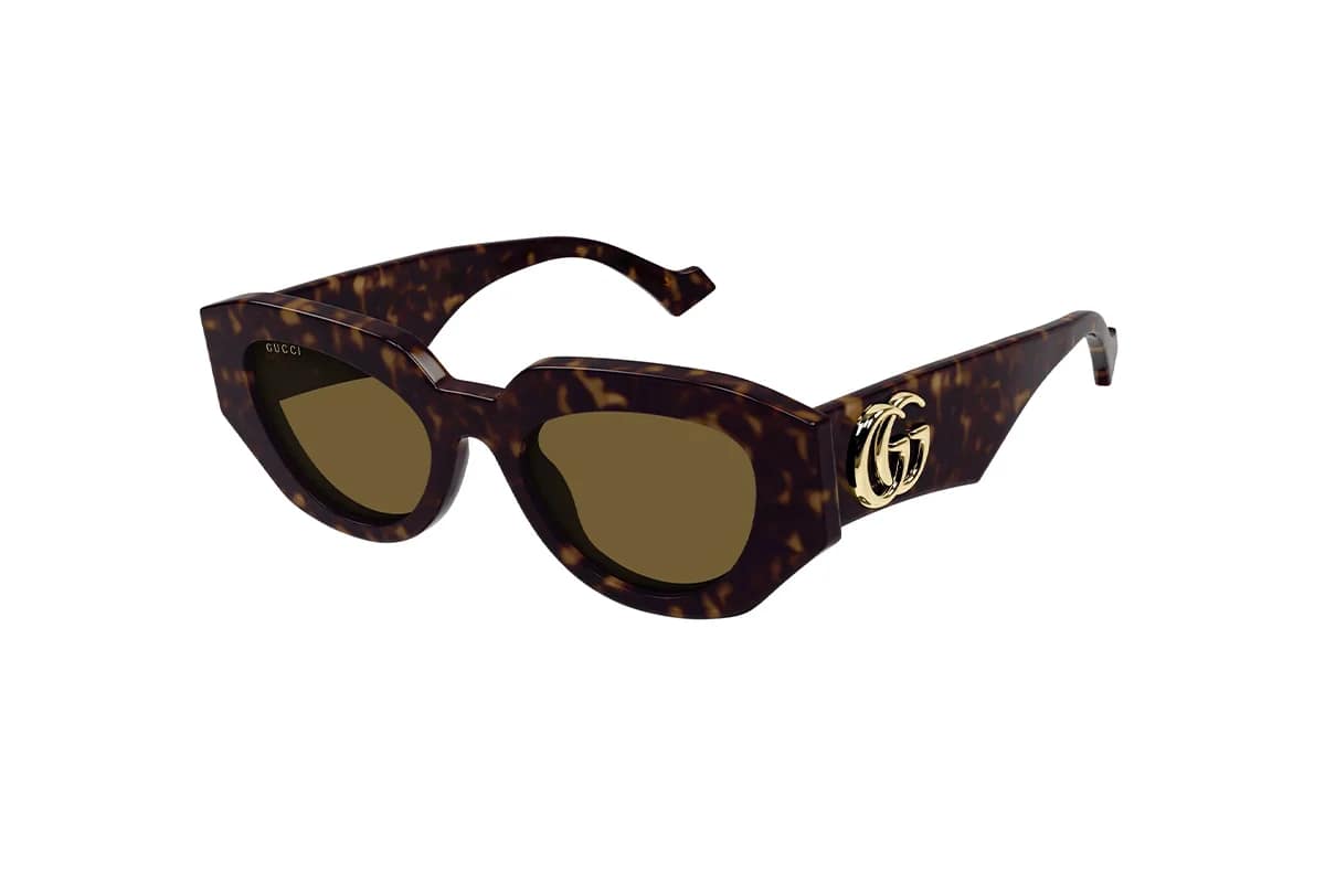 Occhiali da sole Gucci GG1421S 002 (misura 51-20-145). Montatura donna realizzata in Acetato color havanacon lenti in Nylon. Occhiali da sole geometrici ideali per un viso rotondo, a cuore, ovale.