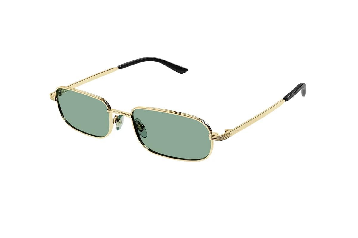 Occhiali da sole Gucci GG1457S 005 (misura 57-19-145). Montatura uomo realizzata in Metallo color oro con lenti in Nylon. Occhiali da sole rettangolari ideali per un viso rotondo, a diamante, ovale.