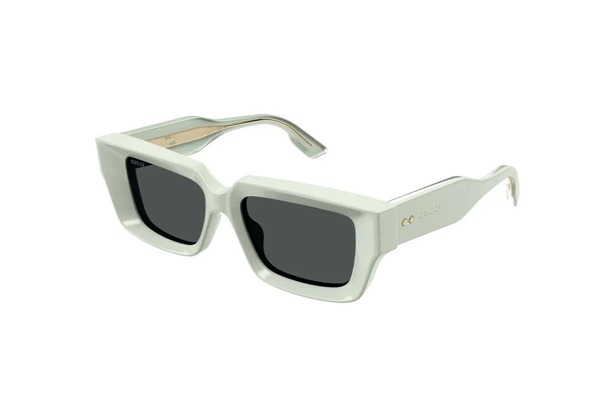 Occhiali da sole Gucci GG1529S 003 (misura 54-18-145). Montatura unisex realizzata in Acetato Riciclato color verde chiaro con lenti in Nylon. Occhiale da sole squadrata ideale per un viso rotondo, ovale.