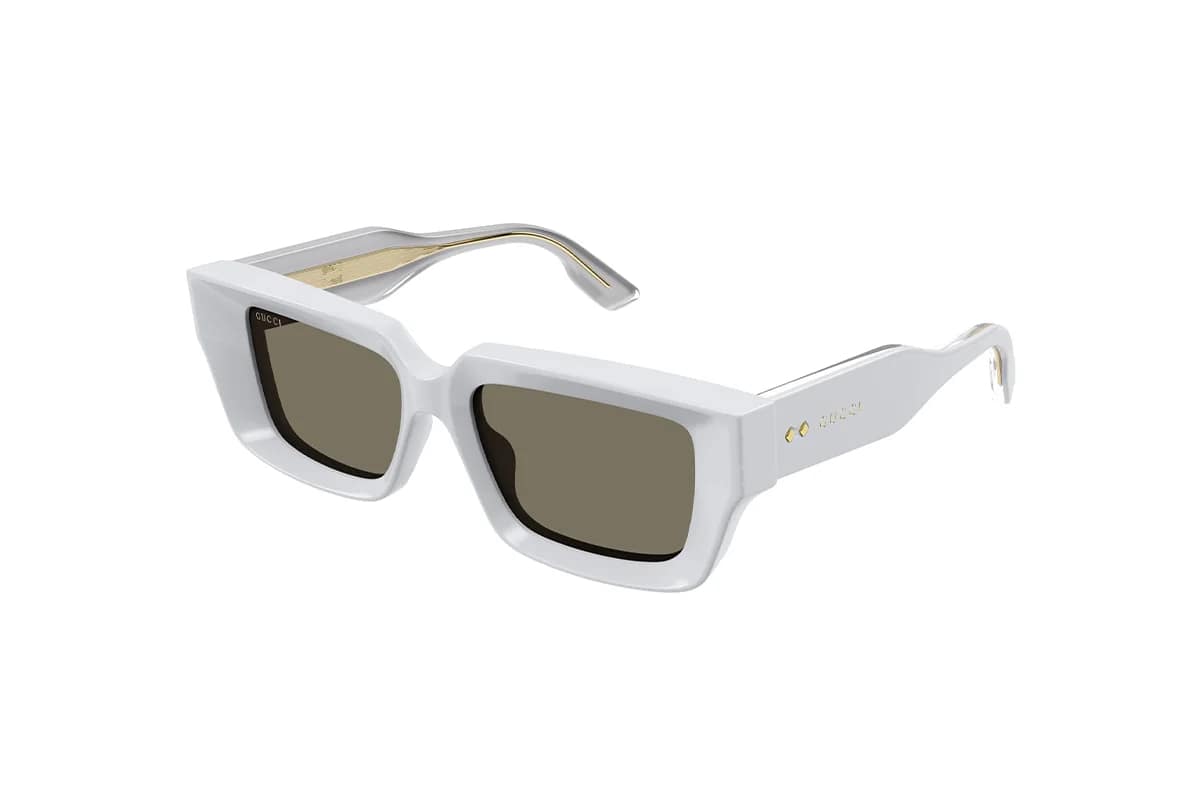 Occhiali da sole Gucci GG1529S 004 (misura 54-18-145). Montatura unisex realizzata in Acetato Riciclato color Grigio chiaro con lenti in Nylon. Occhiale da sole squadrata ideale per un viso rotondo, ovale.