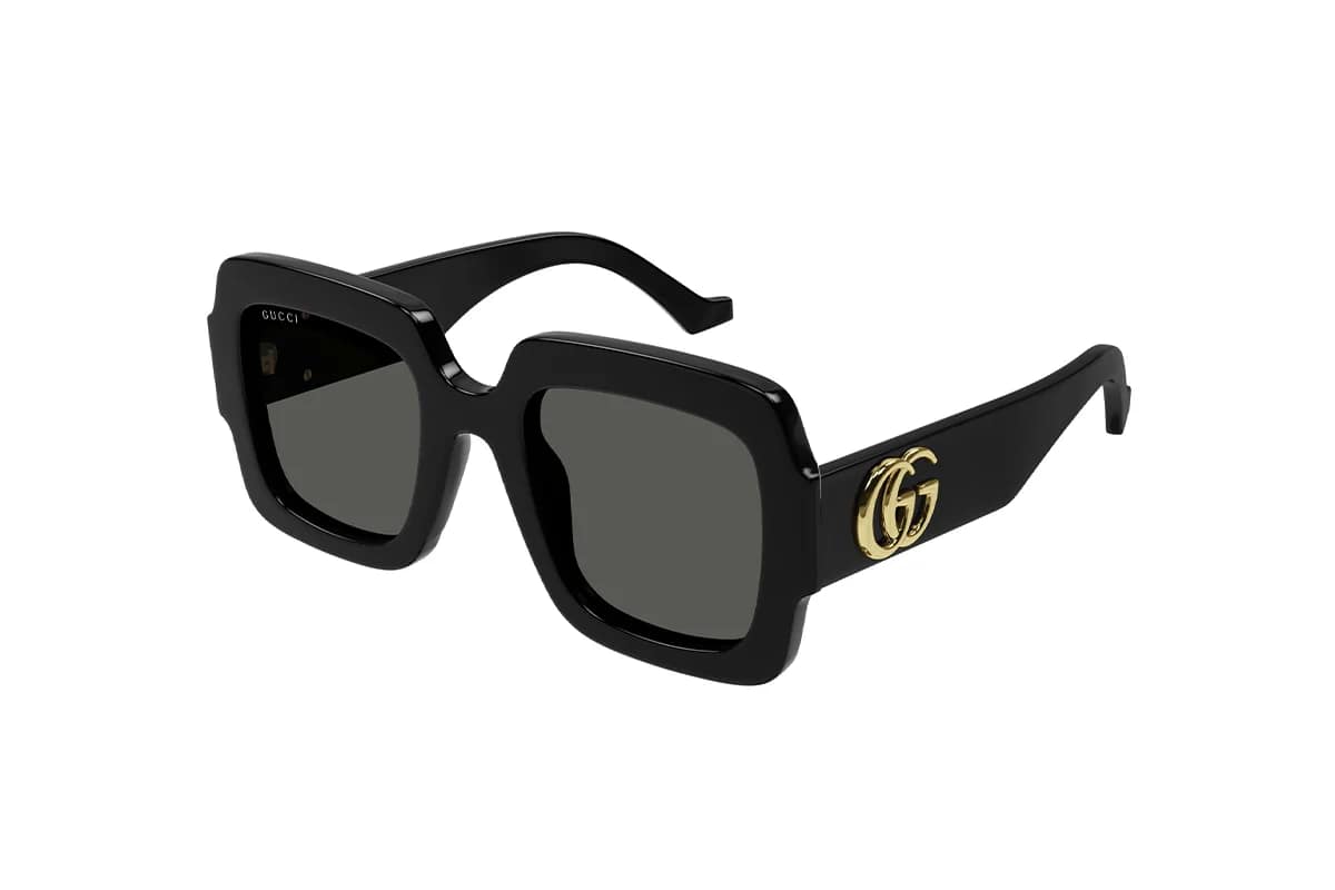 Occhiali da sole Gucci GG1547S 001 (misura 50-24-145). Montatura donna realizzata in Acetato Riciclato color Nero con lenti in Nylon. Occhiale da sole squadrata ideale per un viso rotondo, ovale.