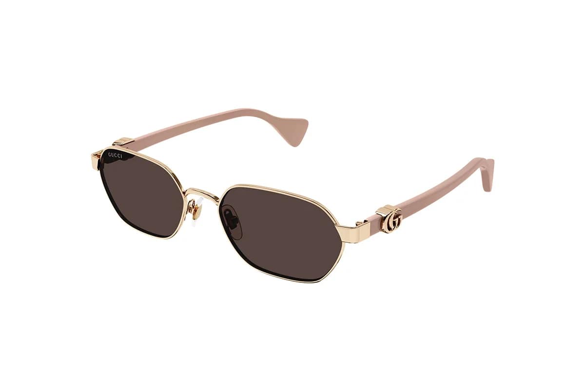 Occhiali da sole Gucci GG1593S 003 gold pink violet (misura 56-18-140) linea GG logo. Montatura donna realizzata in Metallo color Oro e acetato rosa con lenti in Nylon viola. Un modello esagonale semplice ed elegante impreziosito da Logo GG Running sulle aste.