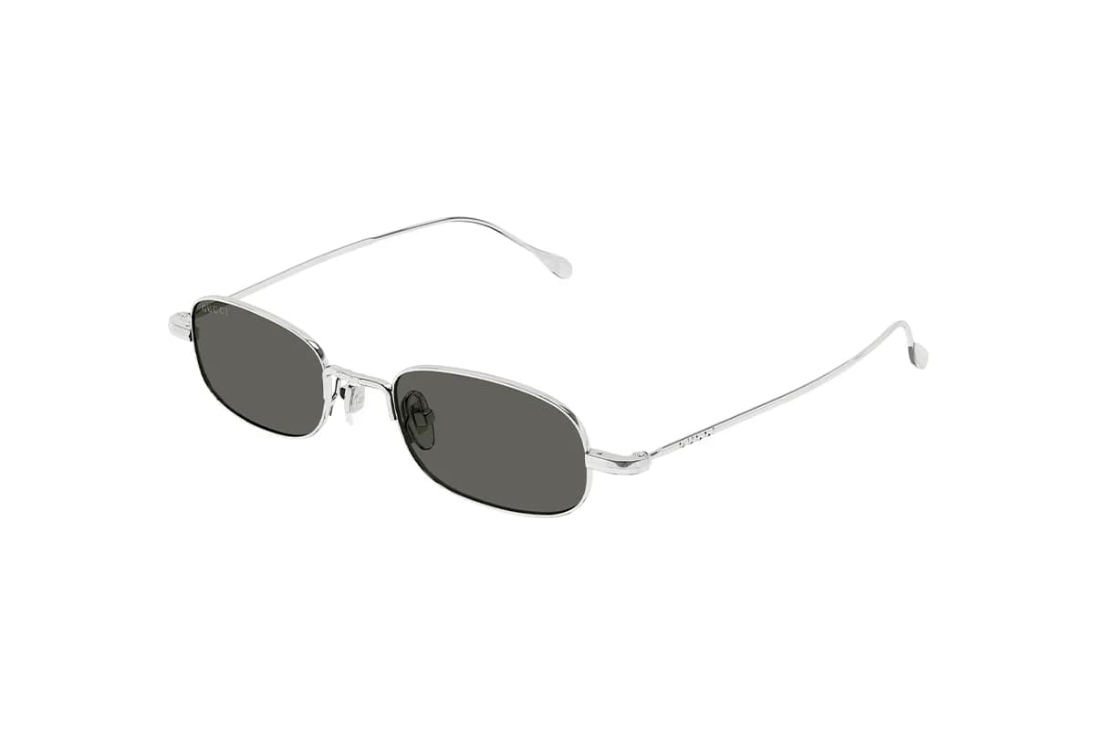 Occhiali da sole Gucci GG1648S 008 (misura 45-18-145). Montatura uomo realizzata in Metallo color Argento con lenti in Nylon. Occhiale da sole rettangolare ideale per un viso rotondo, a diamante, ovale.