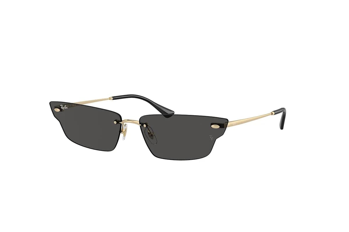 Occhiali da sole Ray Ban Anh RB3731 66 921387 calibro 66 (Misura 66-15-145). Montatura a farfalla unisex, realizzata in metallo color oro chiaro con lenti uniformi in poliammide bio grigio (categoria 3). Una moderna interpretazione della classica forma a farfalla, questo modello si distingue per la sua montatura glasant dalla forma geometrica.