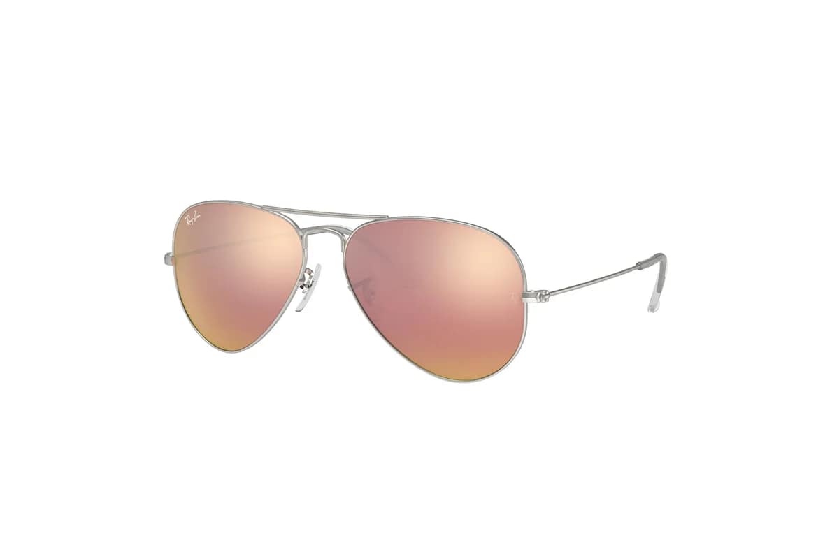 Occhiali da sole Ray Ban Aviator RB3025 019/Z2 calibro 58 (Misura 58-14-135). Montatura aviator unisex, realizzata in metallo color argento con lenti flashate in cristallo color rame (categoria 2).