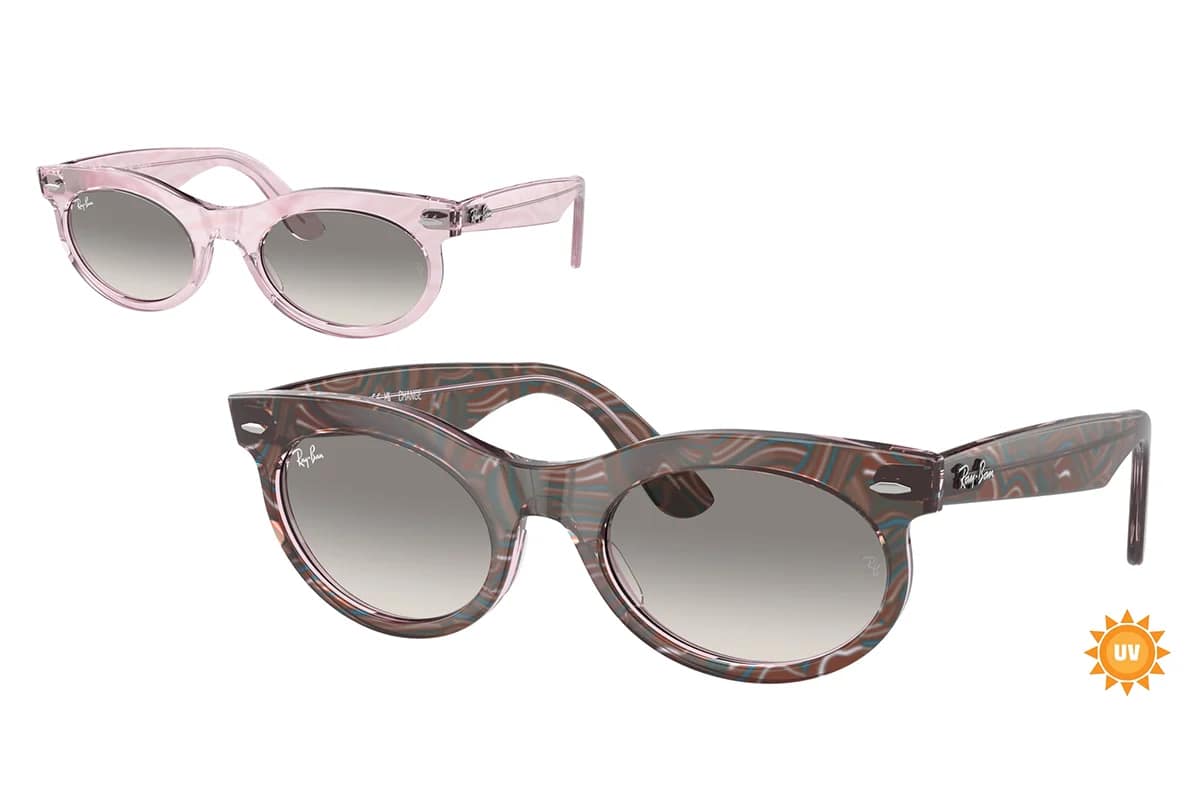 Occhiali da sole Ray Ban Wayfarer Oval RB2242 138432 (misura 53-22-150). Montatura ovale unisex realizzata in acetato color fotocromatico viola a onde con lenti sfumate in cristallo grigio trasparente (categoria 2). Il modello Wayfarer rivisitato con un nuovo frontale dalla forma ovale. Mantenendo lo stesso profilo ultra-ampio e le spesse aste originali, il nuovo design gioca con un’estetica audace e una forma delle lenti più stretta per offrire una fresca interpretazione di questo stile iconico. La linea sopraccigliare curva ammorbidisce le linee audaci del Wayfarer originale, per un look moderno e disinvolto.