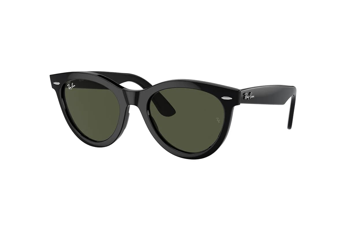 Occhiali da sole Ray Ban Wayfarer Way 2241 901/31 (Misura 54-21-150). Montatura Unisex realizzata in Propionato Nero con lenti in Cristallo colore G-15 Verde. Occhiali da sole rotonda ideali per un viso squadrato, ovale