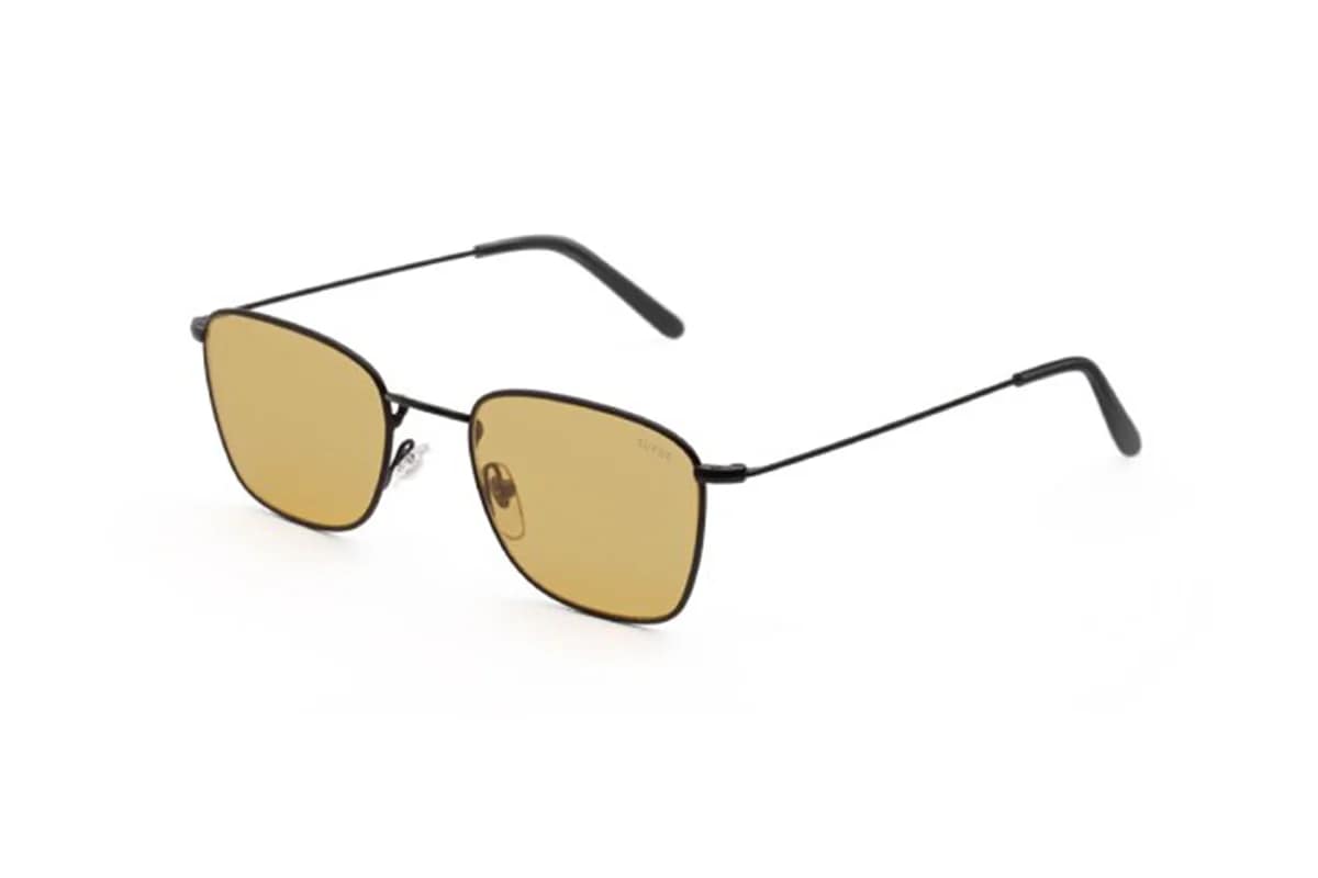 Occhiali da sole Retrosuperfuture Strand 2.0 Photocromic 1 NFH (misura 51-19-140). Montatura squadrata unisex realizzata in metallo nero con lenti uniformi gialle.