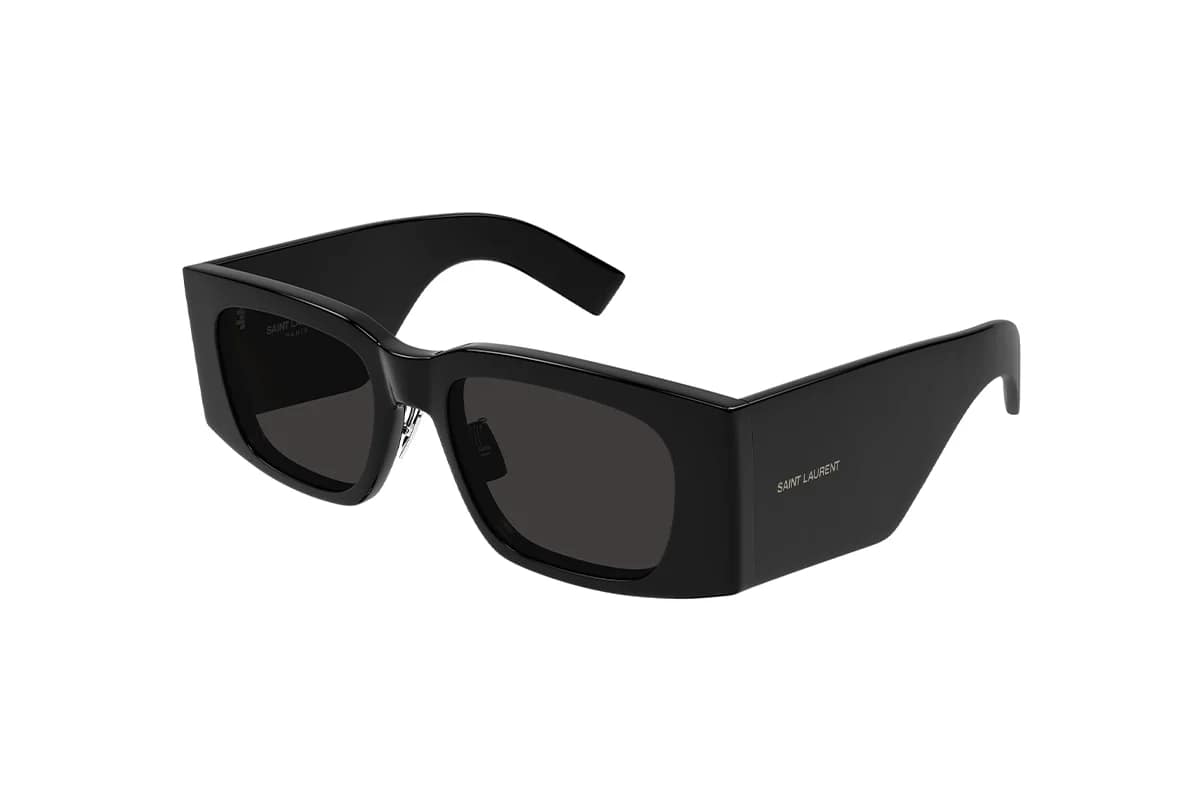 Occhiali da sole Saint Laurent SL 654 001 (misura 52-18-135). Montatura realizzata in Acetato color Black con lenti in Nylon. Occhiali da sole rettangolari ideali per un viso rotondo, a diamante, ovale.