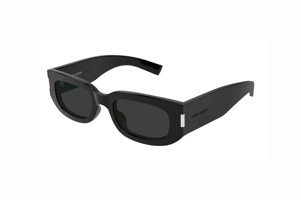 Occhiali da sole Saint Laurent SL 697 001 black (misura 51-21-140). Montatura unisex realizzata in Acetato Riciclato color Nero con lenti in Nylon. Occhiale da sole rettangolari ideale per un viso rotondo, a diamante, ovale.